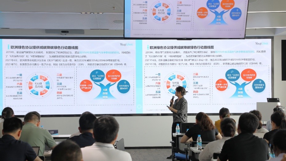 The program featured YoujiVest, a professional ESG consulting organization with a global perspective, which provided expert interpretation of the latest international ESG policies and best practices. In the opening session, a YoujiVest lecturer delivered an in-depth analysis of supply chain transformation under the wave of international ESG compliance, systematically explaining the critical impacts of new sustainability regulations on suppliers. The course emphasized that, with mandatory disclosure requirements being implemented worldwide, companies must establish end-to-end responsibility management systems covering raw material procurement, manufacturing, and logistics. Environmental management, labor rights protection, and business ethics must be deeply integrated into business operations. Through case studies, the lecturer also highlighted the risks of non-compliance, such as trade barriers and legal penalties, stressing that ESG capability has become a strategic necessity in global competition. Companies that take the lead in building ESG capacity can secure market access through compliance reviews, reshape brand value through sustainable practices, and ultimately seize high-value positions in the green supply chain landscape.